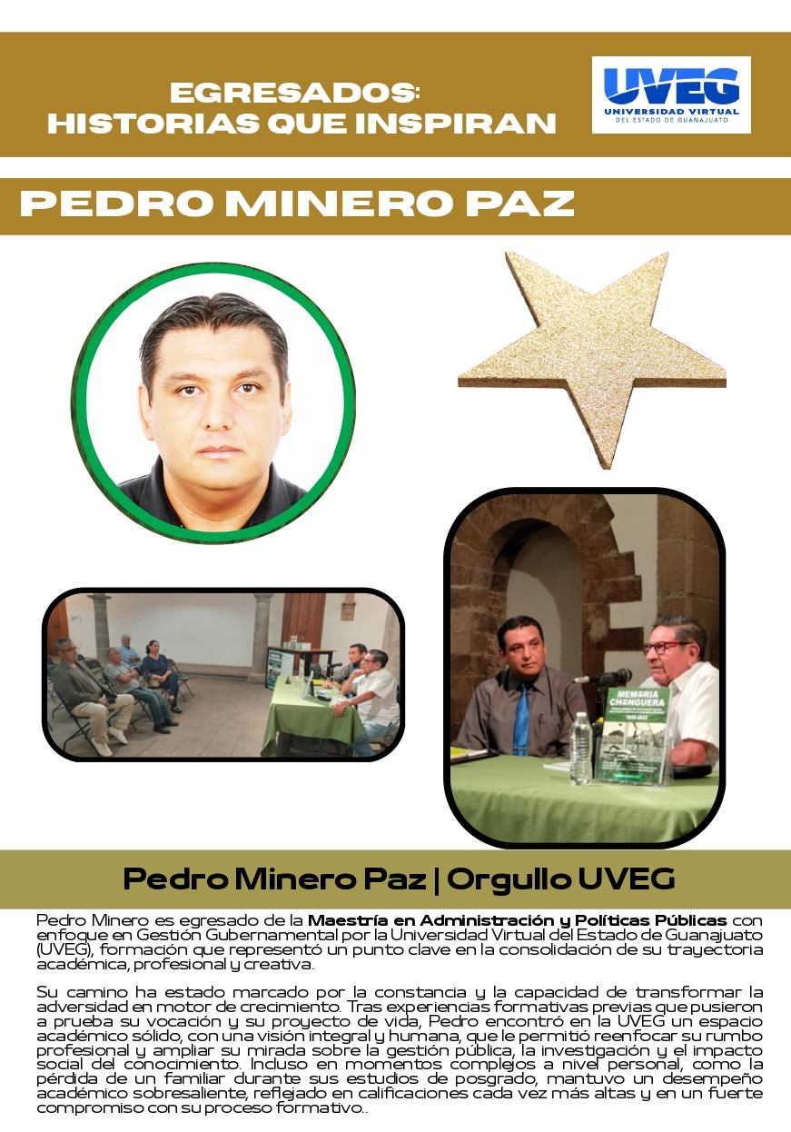 En la Revista Egresados de la Universidad Virtual del Estado de Guanajuato * Pedro Minero Paz, de la Maestría en Administración y Políticas Públicas con enfoque en Gestión Gubernamental La…